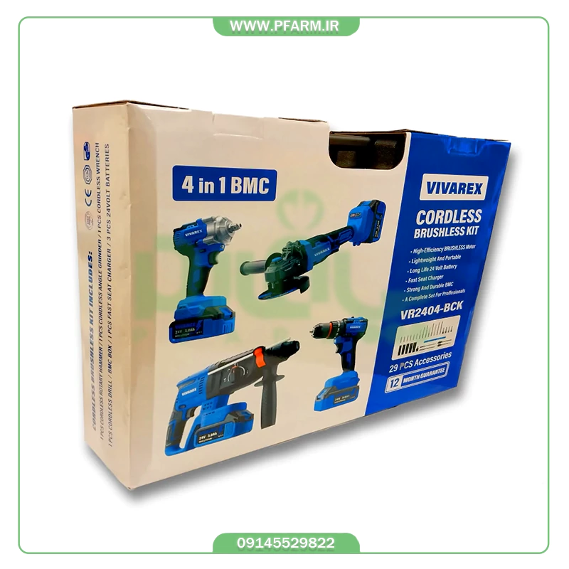 اگر به دنبال یک ست کامل و حرفه‌ای برای انجام تمام کارهای نصب، ساخت‌وساز، تعمیرات خانگی یا کارگاهی هستید، کیت 4 عددی براشلس ویوارکس مدل BCK-4024 یکی از کامل‌ترین و قدرتمندترین گزینه‌هایی است که می‌توانید انتخاب کنید. این پکیج شامل دریل شارژی، بتن‌کن شارژی، بکس شارژی و فرز شارژی است؛ چهار ابزار ضروری که هر کدام به تنهایی یک دستگاه کاربردی هستند و کنار هم یک مجموعه بی‌رقیب را تشکیل می‌دهند.